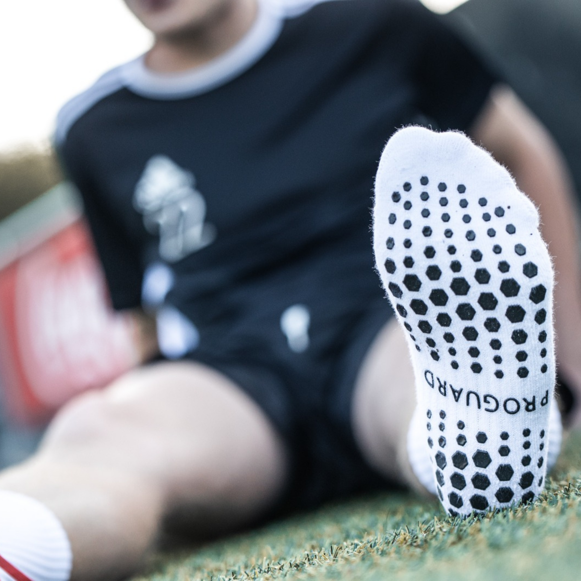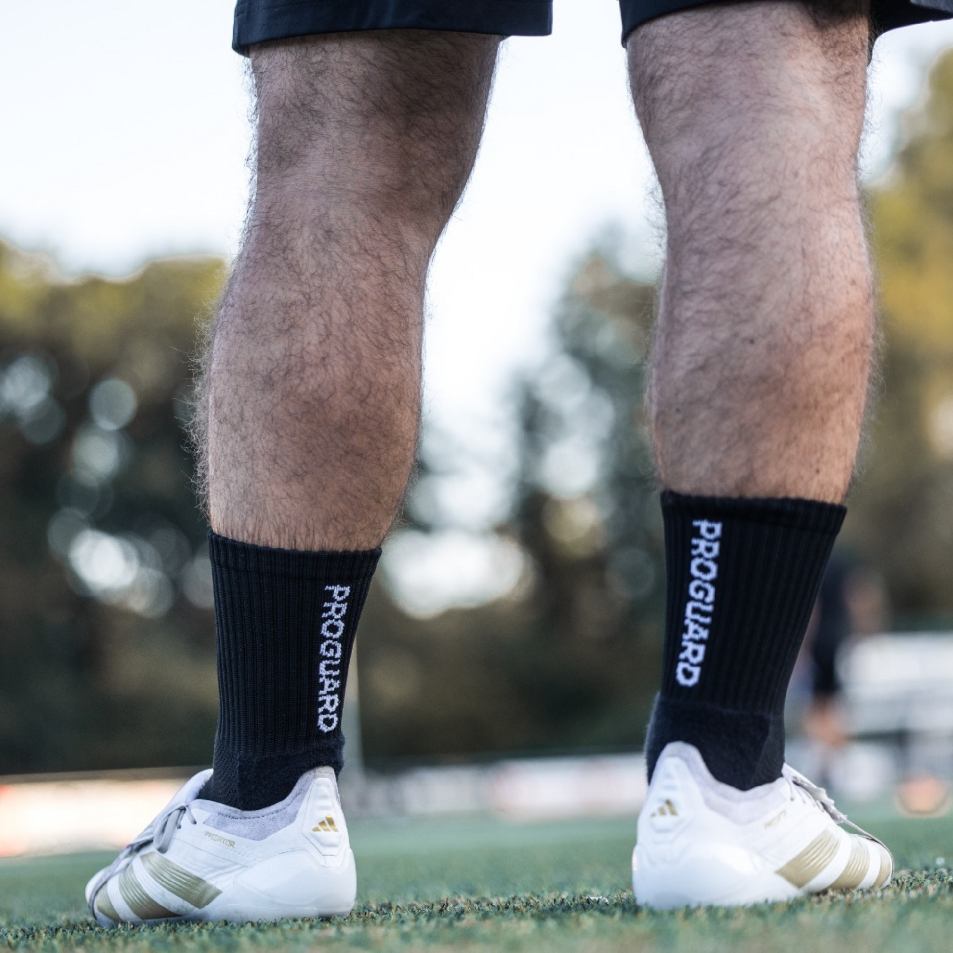 ProGuard Sokken sluiten naadloos aan om je voet, zonder harde naden of irriterende drukpunten. De ultrazachte stof voelt licht aan, maar biedt tegelijkertijd stevige ondersteuning – precies wat je nodig hebt tijdens elke sprint, tackle of pass.